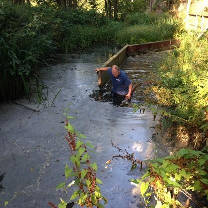 Fettrikt, miljöfarligt vatten rann ut i dagvattendammen.